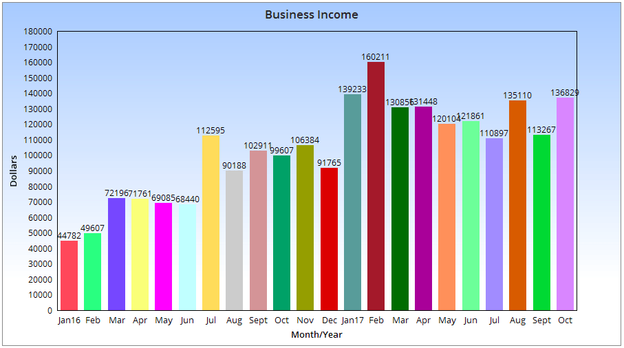 October was yet another great month for the business. I have been working much less than usual, and I also had a virtual assistant start in July which has made work even more enjoyable because I now have my VA completing the tasks that would take up a lot of my hours each day.