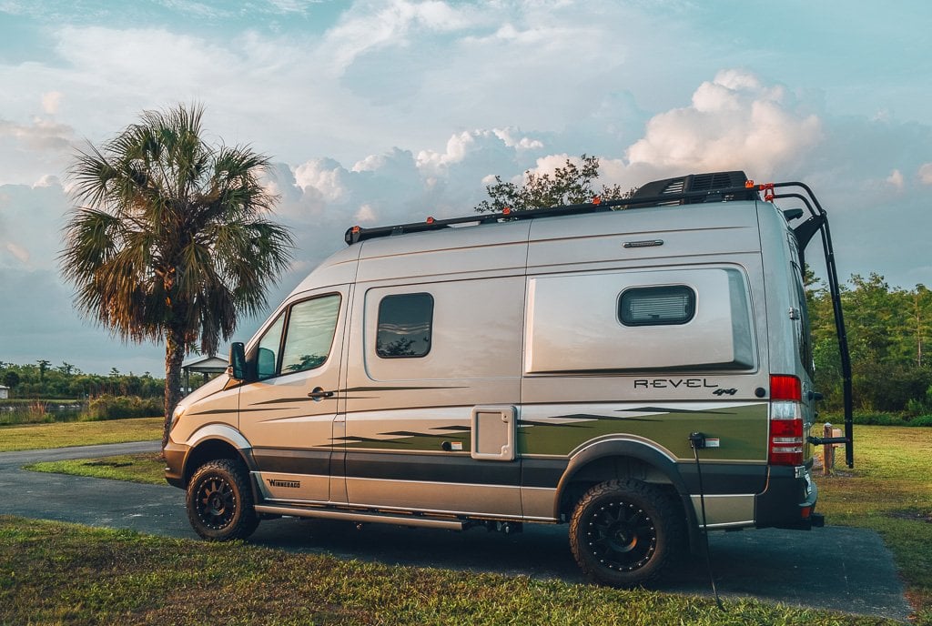 We’ve been looking at vans for quite some time, and decided to get a Winnebago Revel. This is a four-wheel drive van that also has: