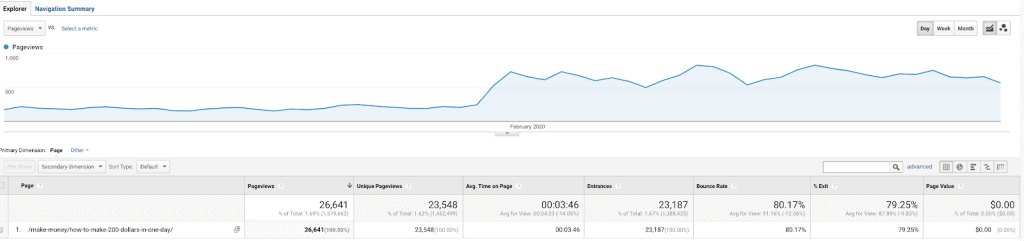 Sometimes you’ll get an outsized win for very little effort. For example, I changed a title on a post about making $200 a day that resulted in a pretty big win: