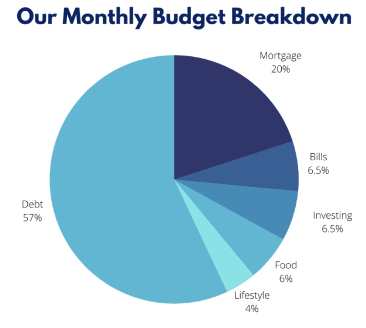 Here’s a breakdown of our budget by percentages and shows how we keep our expenses low to put the extra towards debt.