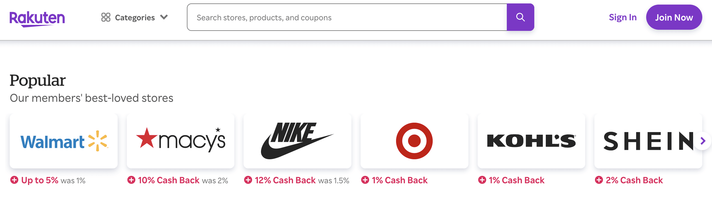 As you can see in the screenshot above, you can save a good percentage right now at the stores you probably already shop at, such as Walmart, Target, Best Buy, Old Navy, Bed Bath and Beyond, Nike, Chewy, Sephora, and more.