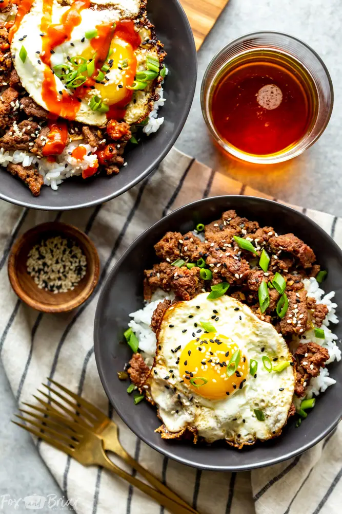 • Korean Ground Beef Bowls – My mom is Korean, and I love finding recipes that are Korean themed. Now, this isn’t a traditional Korean meal, but it has many traditional ingredients, like ginger, soy sauce, and sesame oil. This recipe would go great with steamed broccoli or green beans.