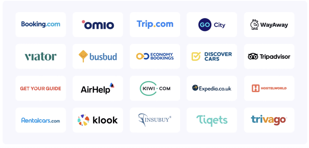 This site is trusted by 100+ major travel companies, such as Bооking, Viator, Expedia, Trivago, and GetYourGuide.