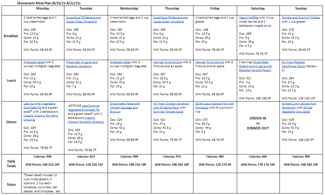 Totals: WW Points 16B 21G 16P, Calories 908**