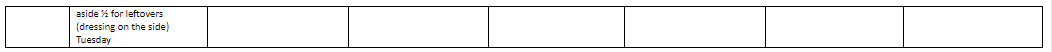 *Green salad includes 12 cups mixed greens, 4 scallions, 1 cup each: tomatoes, cucumber, bell pepper, and chickpeas.