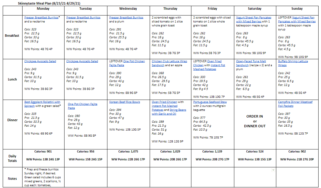 Totals: WW Points 21B 27G 20P, Calories 902**