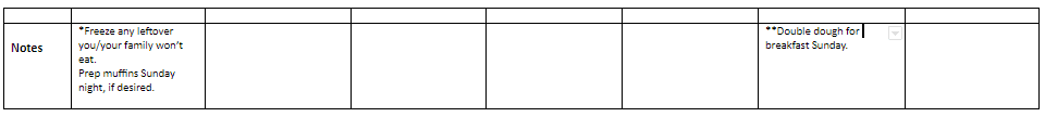 *Freeze any leftover you/your family won’t eat. Prep muffins Sunday night, if desired.