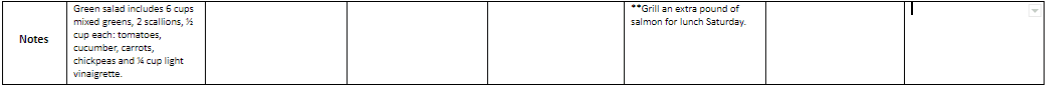 *Green salad includes 6 cups mixed greens, 2 scallions, ½ cup each: tomatoes, cucumber, carrots, chickpeas and ¼ cup light vinaigrette.