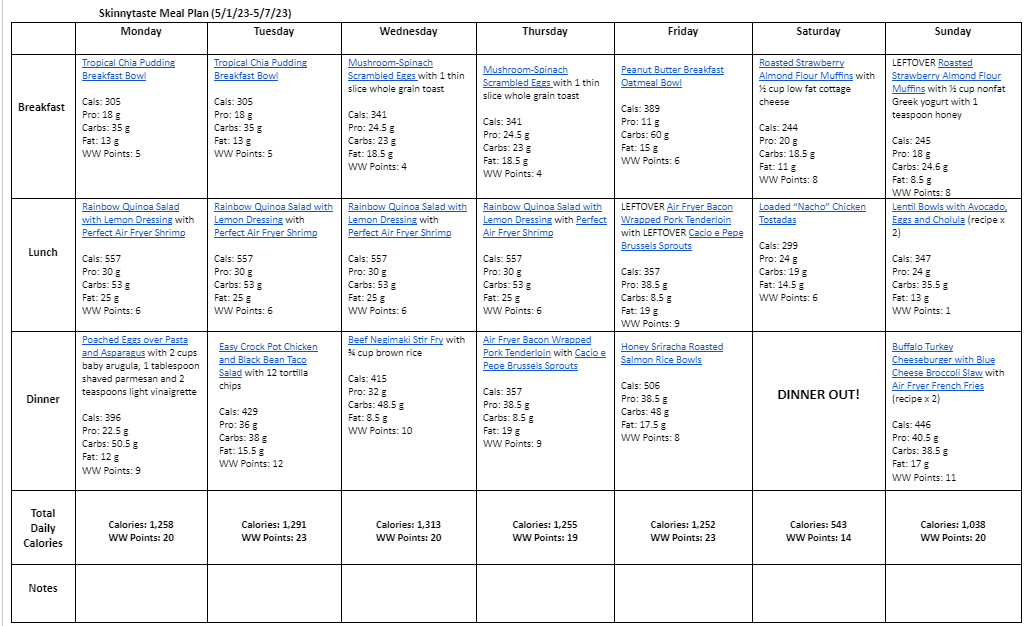 7 Day Healthy Meal Plan (May 1-7)
