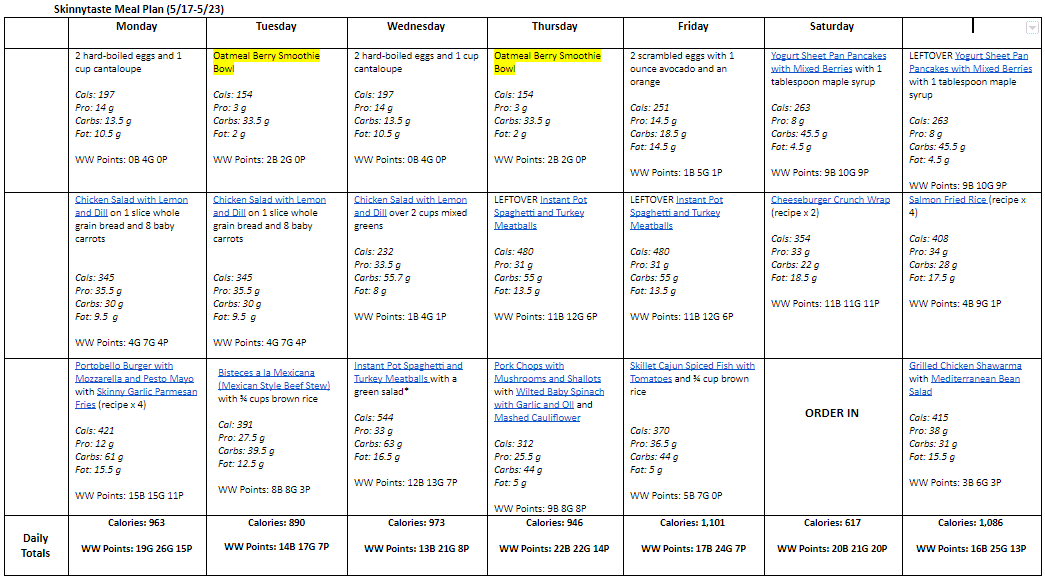 Totals: WW Points 17B 24G 7P, Calories 1,101*