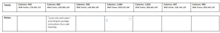 Totals: WW Points 17B 24G 17P, Calories 943*