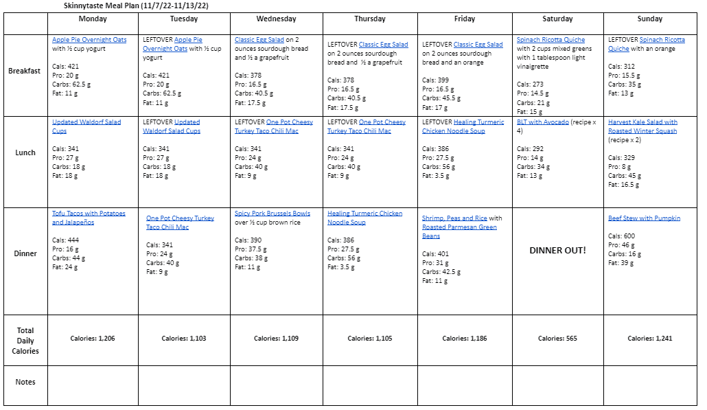 If you’re new to my meal plans, I’ve been sharing these free, 7-day flexible healthy meal plans (you can see my previous meal plans here) that are meant as a guide, with plenty of wiggle room for you to add more food, coffee, beverages, fruits, snacks, dessert, wine, etc. or swap recipes out for meals you prefer, you can search for recipes by course in the index. Depending on your goals, you should aim for at least 1500 calories* per day. There’s no one size fits all, this will range by your goals, your age, weight, etc.