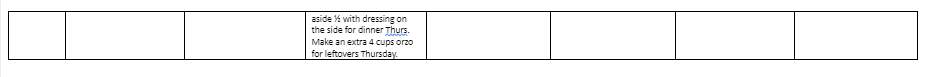 # Green salad includes 12 cups mixed greens, 4 scallions and 1 cup each: tomatoes, cucumbers, carrots and chickpeas with ½ cup light vinaigrette. Set aside ½ the salad, with dressing on the side, for dinner Thursday