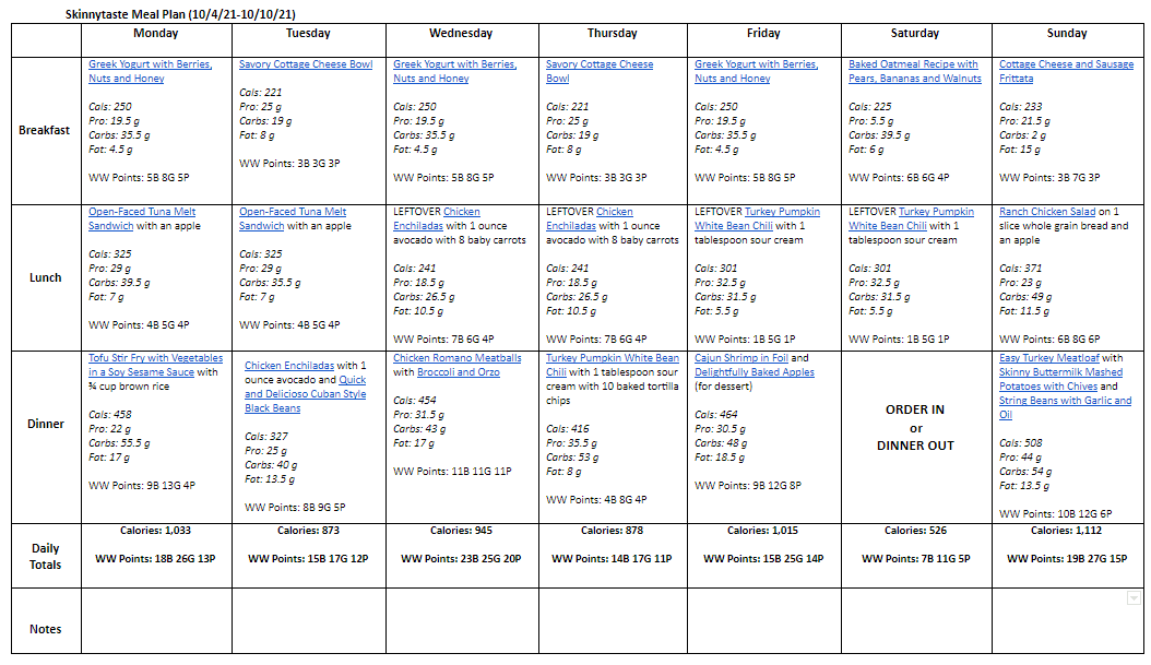 Breakfast and lunch Monday-Friday, are designed to serve 1 while dinners and all meals on Saturday and Sunday are designed to serve a family of 4. Some recipes make enough leftovers for two nights or lunch the next day. While we truly believe there is no one size fits all meal plan, we did our best to come up with something that appeals to a wide range of individuals. Everything is Weight Watchers friendly, I included the updated WW Blue SP for your convenience, feel free to swap out any recipes you wish or just use this for inspiration!