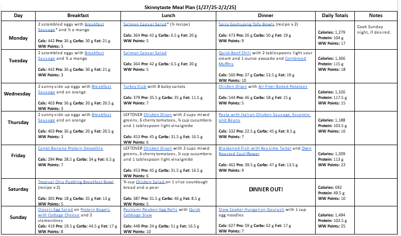 I hope this month of high-protein meal plans has helped you get closer to the goals you set for 2025! After this plan, I’ll be returning to alternating between regular and high-protein plans. As always, I’d love to hear your feedback on whether these plans have been helpful. What have been some of your favorite high protein meals and snacks?