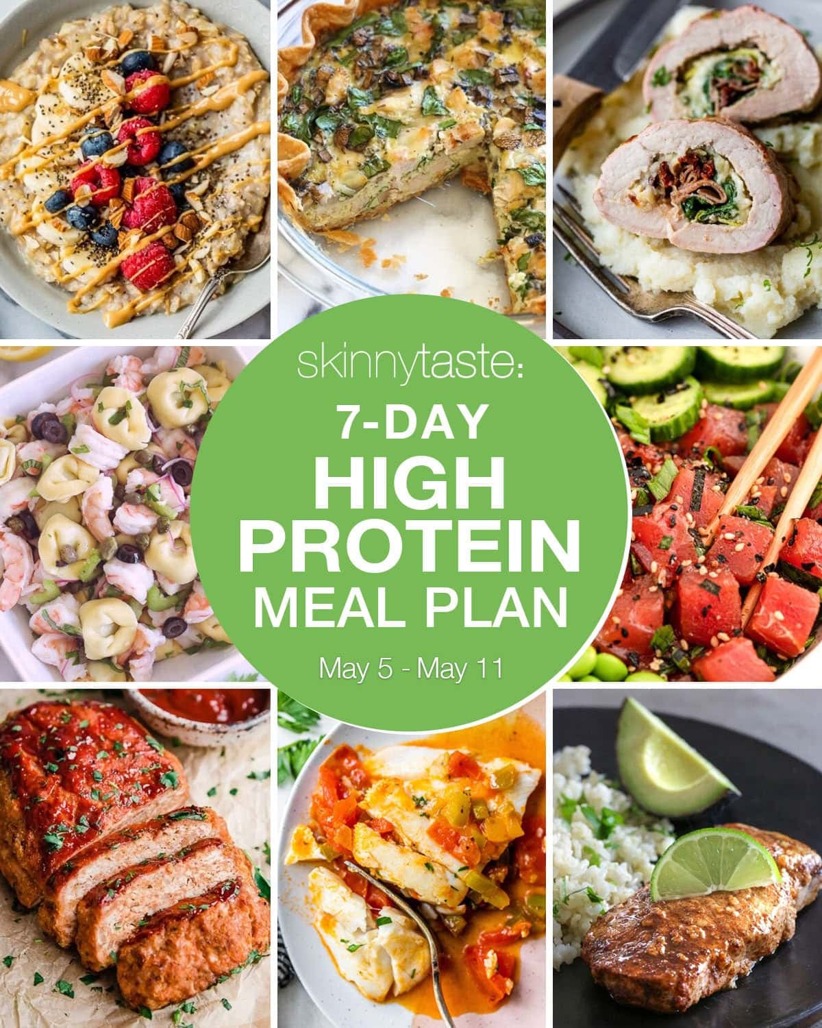 A free, 7-day high protein diet meal plan including breakfast, lunch and dinner ideas and a shopping list. All recipes include macros and Weight Watchers points.
