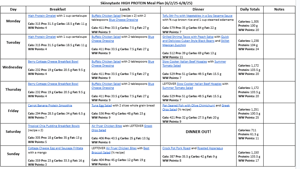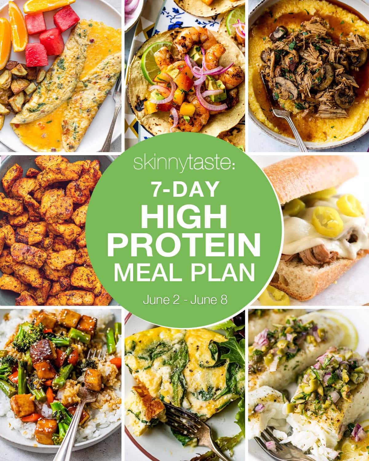 A free, 7-day high protein diet meal plan including breakfast, lunch and dinner ideas and a shopping list. All recipes include macros and Weight Watchers points.