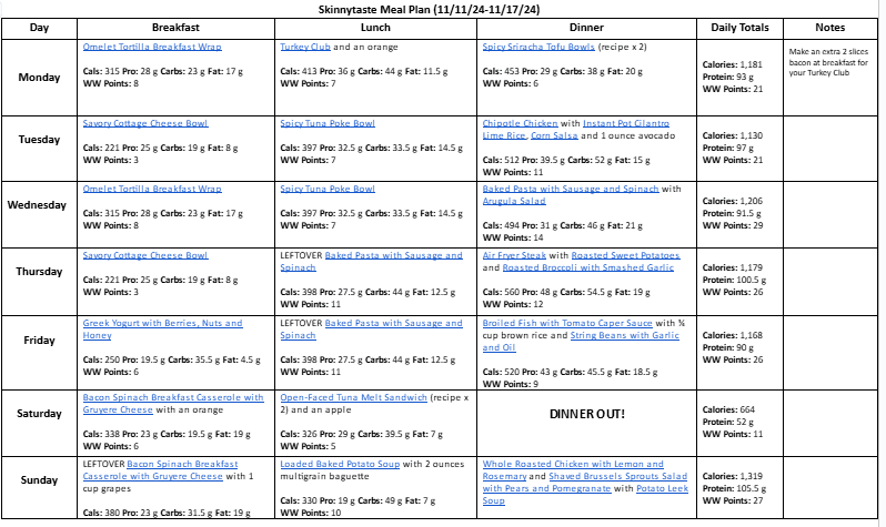 7 Day High Protein Diet Meal Plan (Nov 11-17)