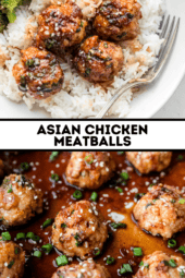 If you need some easy dinner ideas, you’ll love these Asian Chicken Meatballs. I like to roast broccoli alongside them in another sheet pan and serve them over rice. This meal comes together quickly with minimal effort, making it perfect for busy weeknights. Plus, it’s great for meal prep, and I love the leftovers for lunch. If you enjoy these and want to try a similar recipe in the air fryer, make sure to try my turkey Air Fryer Asian Meatballs.