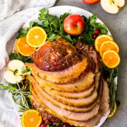 also have these more traditional ham recipe, Honey-Baked Ham and Apricot-Rum Glazed Spiral Ham. And if you want to make it in the crock pot, try my Slow Cooker Ham with Apricot-Dijon Glaze.