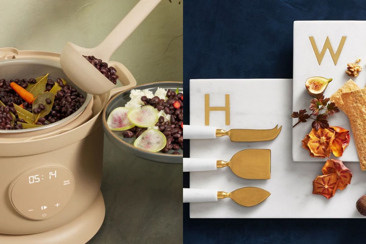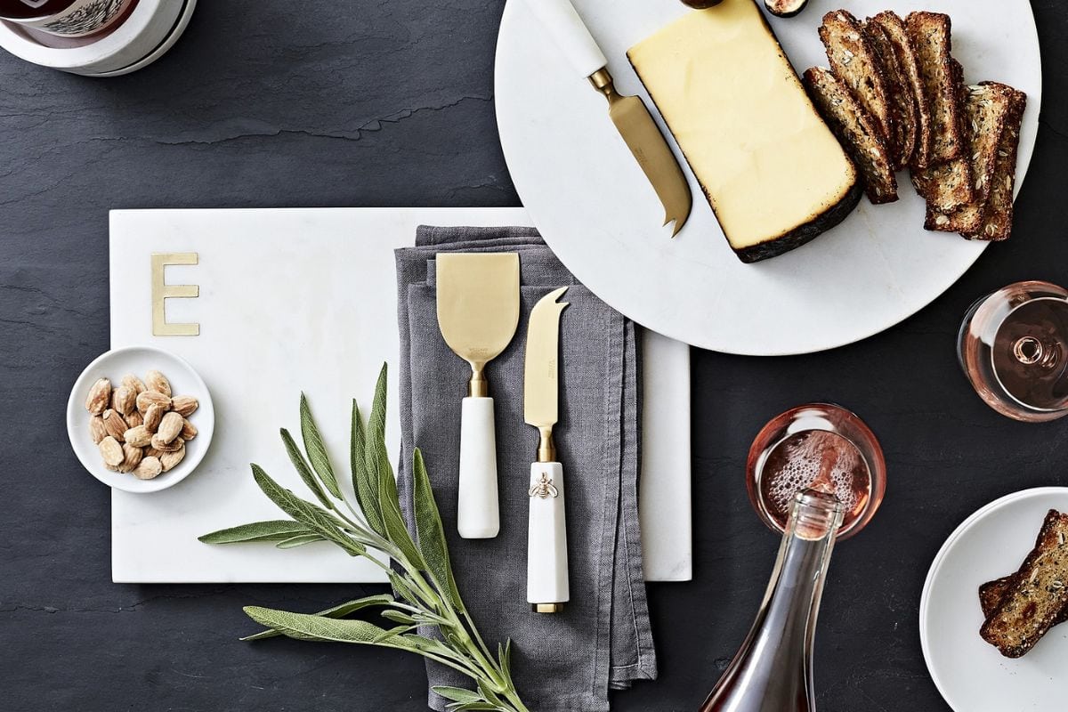 These beautiful marble charcuterie boards are perfect for holiday hosting. The slab is 14 inches wide, and it has an inlaid antiqued brass letter in the upper corner. You can choose from any letter of the alphabet to represent the couple’s last name, and the brand also has matching cheese knives to go with it to make the perfect entertaining board.