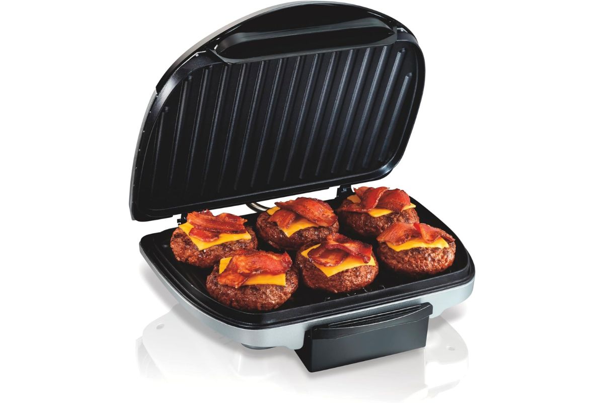 - Best Budget: Hamilton Beach Electric Indoor Searing Grill – $59.99 at Walmart