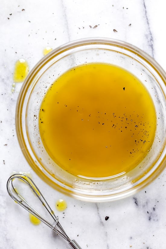 - Whisk vinaigrette ingredients and set aside.