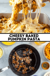 Transform a can of pure pumpkin purée into a luscious, creamy pumpkin pasta sauce for a delicious fall comfort dish. This baked pumpkin pasta is cheesy and delicious, my husband loved how it turned out! Another pumpkin pasta dish I love is Pumpkin Mac n Cheese Recipe. See more pumpkin recipes here!