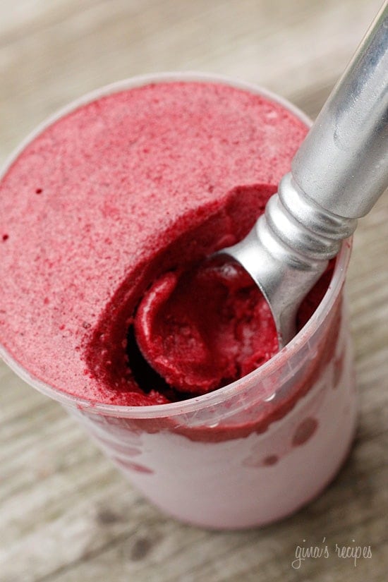 First on my list was sorbet. Cherry ice is my favorite summer flavor but I was really amazed at how much better cherry ice tastes when using real cherries and not the artificial cherry flavor we are all used to. The deep red color is all natural, no color added. Although pitting the cherries is a bit time consuming, it’s well worth the end results.