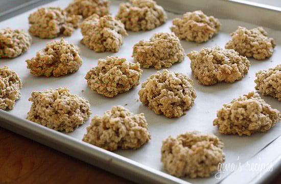 - Drop heaping tablespoonfuls of the dough onto prepared baking sheets.