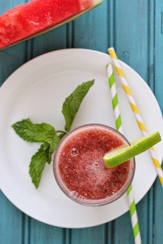 If you’ve ever had a Mama Chia beverage and enjoyed it, then I think you will love this drink! The chia seeds in this refreshing watermelon beverage add a healthy dose of powerful antioxidants, omega-3s, dietary fibers, as well as complete protein, calcium and magnesium. Another chia favorite of mine is my Kale Banana Chia Hemp Superfood Smoothie.