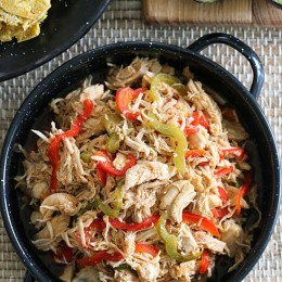 This Cuban inspired dish is made with shredded chicken breast cooked in the slow cooker, then sauteed with bell peppers, onions, cumin and lots of Latin flavor! If you have leftover rotisserie chicken, you can use that instead and skip the slow cooker!