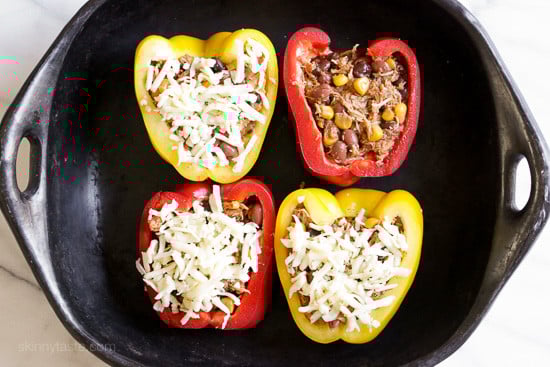 - Fill each pepper with 1/2 cup chili mixture, top each with 1 1/2 tbsp of cheese.