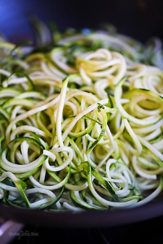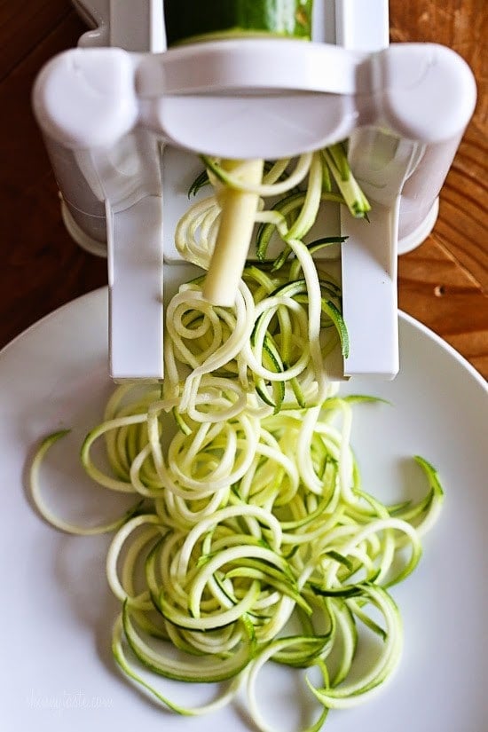 To make the zoodles you can use a vegetable spiralizer such as the Paderno Spiral Vegetable Slicer or a mandolin fitted with a julienne blade although the spiralizer is so much easier and safer.