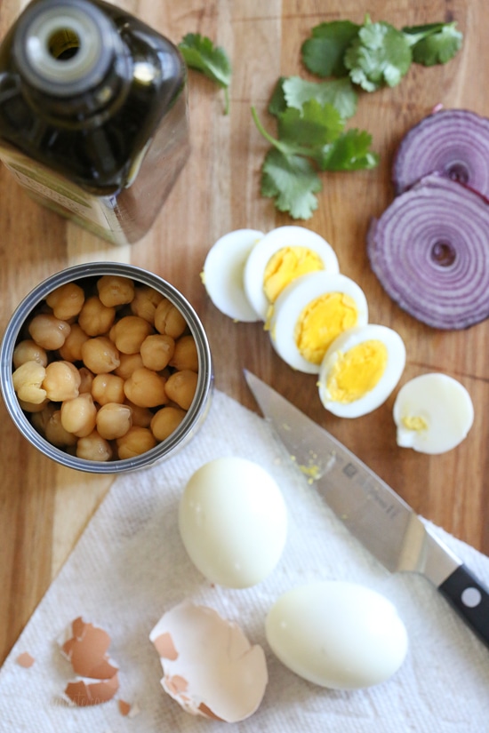 I’m obsessed with chickpeas, I can literally eat them right out of the can. My husband, on the other hand doesn’t share my chickpea love so I usually have them for lunch when he’s not around. And now that chickpeas and eggs are zero points on the new Weight Watchers Freestyle program, I love them even more! So easy to do with my foolproof hard boiled egg recipe.