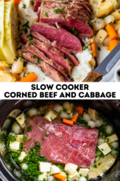 This easy Corned Beef and Cabbage is the perfect festive dish for St Patrick’s Day, and making it in the slow cooker is so convenient for a busy schedule. To lighten it up, I trim off all the fat from the corned beef before cooking it. Even with all the fat removed, it’s still tender and flavorful. I also have my original stovetop Corned Beef and Cabbage with Horseradish Cream, Instant Pot Corned Beef and Cabbage, and this Corned Beef and Cabbage Soup. And another St. Patrick’s dinner idea is my healthy Shepherd’s Pie.