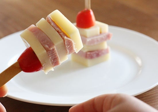It’s almost like a chef’s salad on a stick. You could use turkey and whatever cheese your children enjoy. Pack a roll or some crackers on the side.