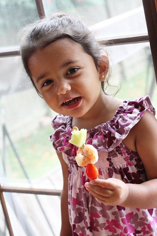 My toddler isn’t big on sandwiches yet, but if I give her all the elements from a sandwich and place them on a stick her face lights up and she happily eats it. In fact while photographing the food for this post, both of my kids stood by and waited for me to finish so they could eat it.