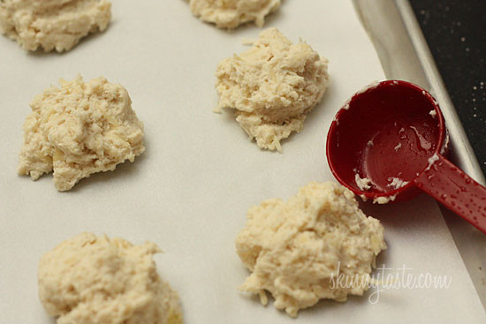 - Drop batter by heaping tablespoonfuls (about 1.5 oz each) onto prepared cookie sheet. Bake for 10 minutes.