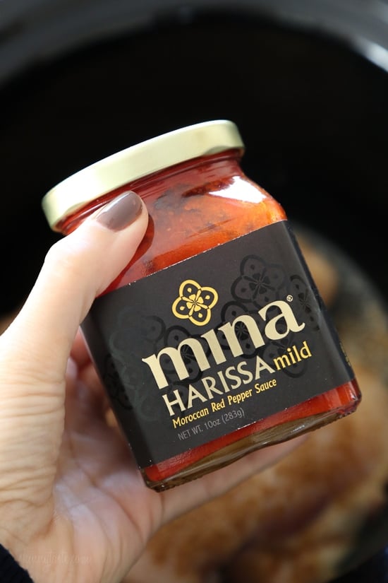 To make this super fast and easy, I used Mina Harissa (I love this stuff!). I buy the mild one, which is mild enough that even my eight year old loves this chicken too! But they also sell a spicy one if you like it spicy.