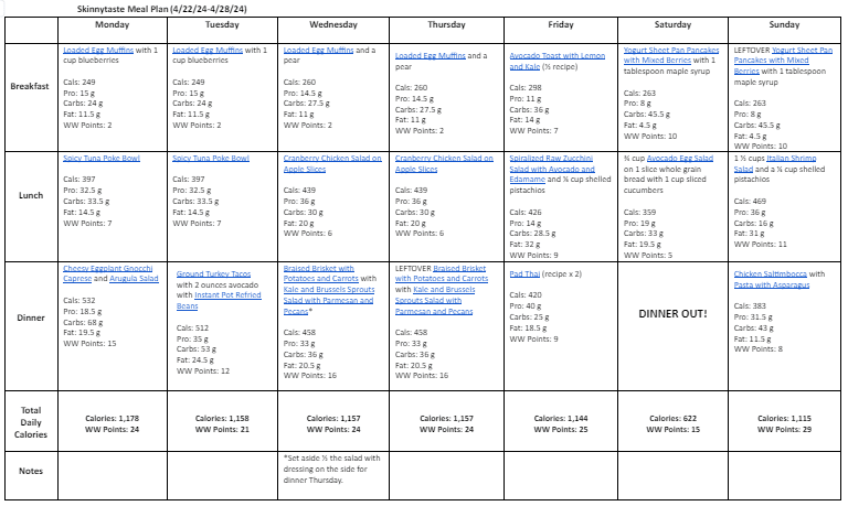 Free 7 Day Healthy Meal Plan (April 22-28)