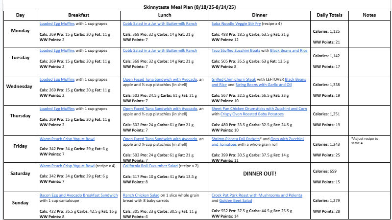 Free 7 Day Healthy Meal Plan (August 18-24)