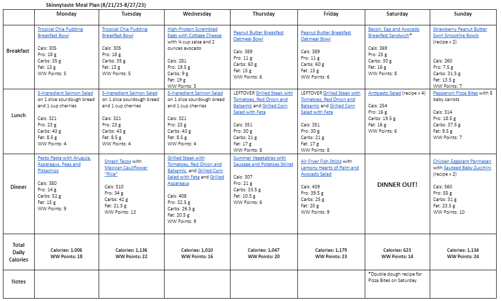 Free 7 Day Healthy Meal Plan (August 21-27)