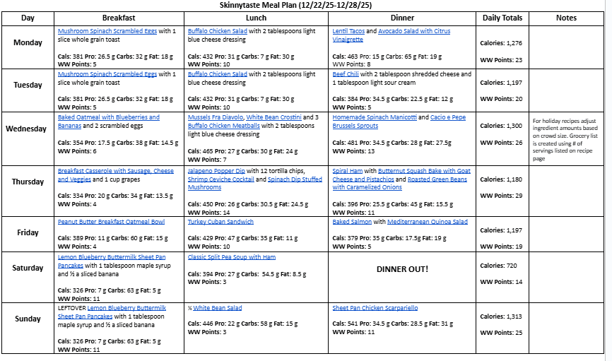 Free 7 Day Healthy Meal Plan (Dec. 22-28)