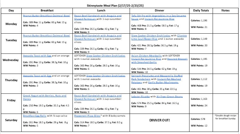 Free 7 Day Healthy Meal Plan (Feb 17-23)