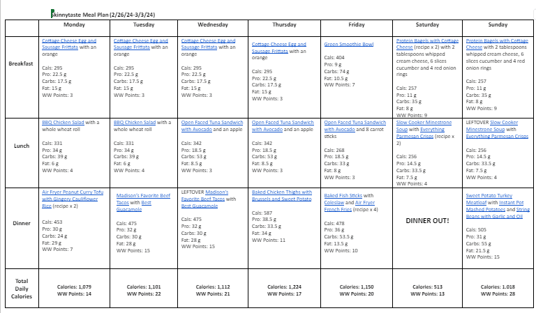 Free 7 Day Healthy Meal Plan (Feb 26-March 3)
