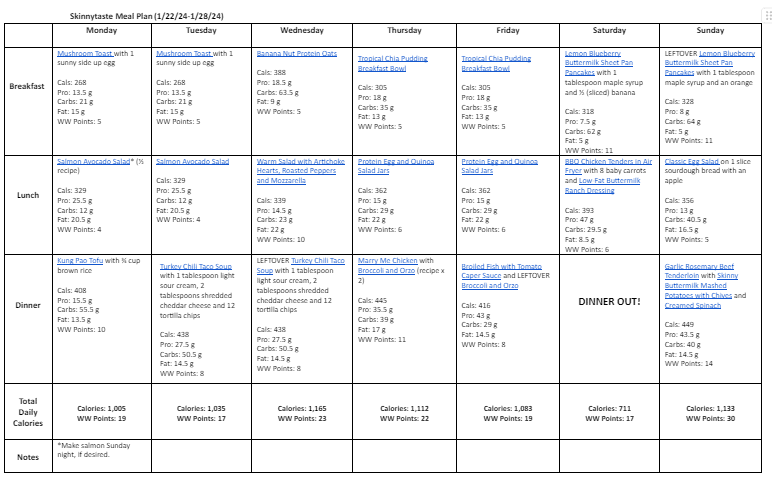 Free 7 Day Healthy Meal Plan (Jan 22-28)