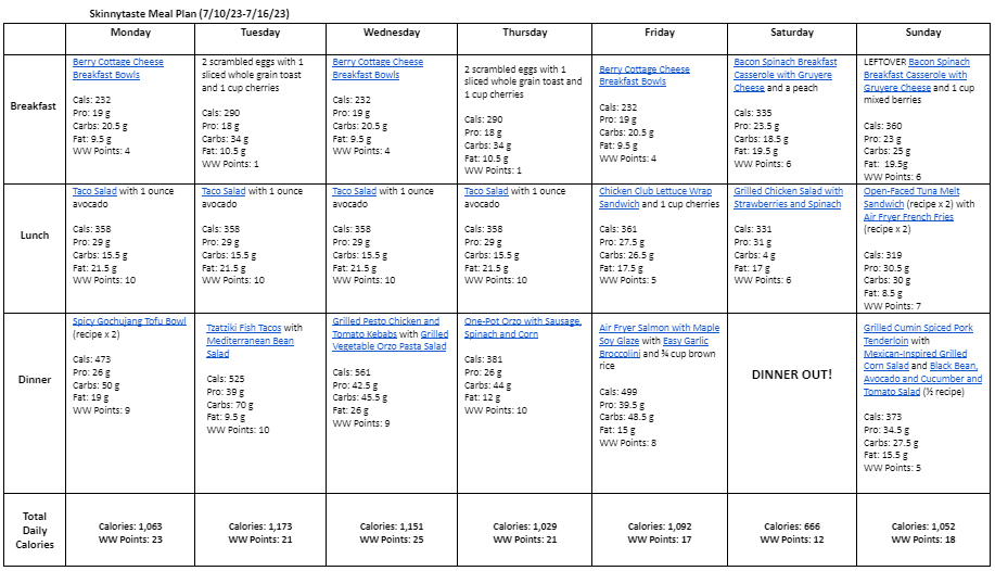 7 Day Healthy Meal Plan (July 10-16)