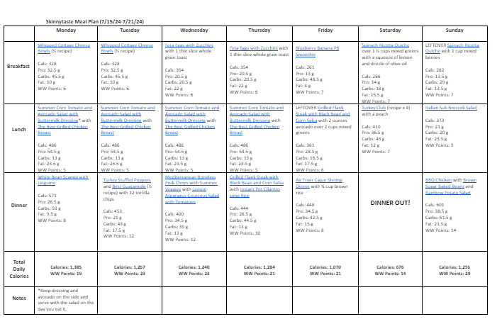 Free 7 Day Healthy Meal Plan (July 15-21)