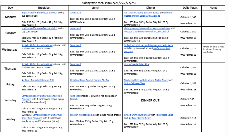 Free 7 Day Healthy Meal Plan (July 21-27)